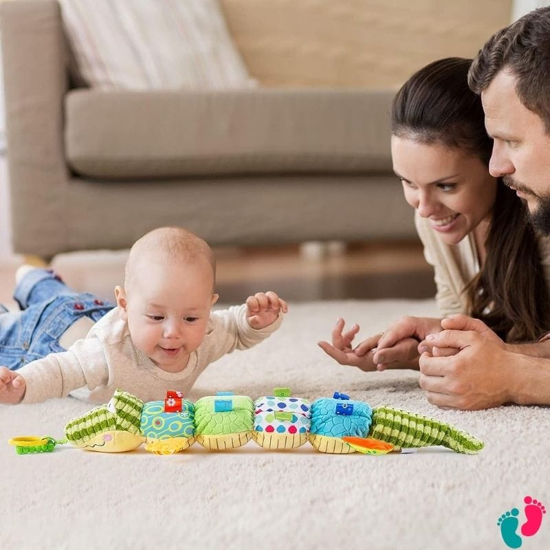 La Peluche Sensorielle Longue et Colorée deviendra rapidement le compagnon préféré de votre bébé.