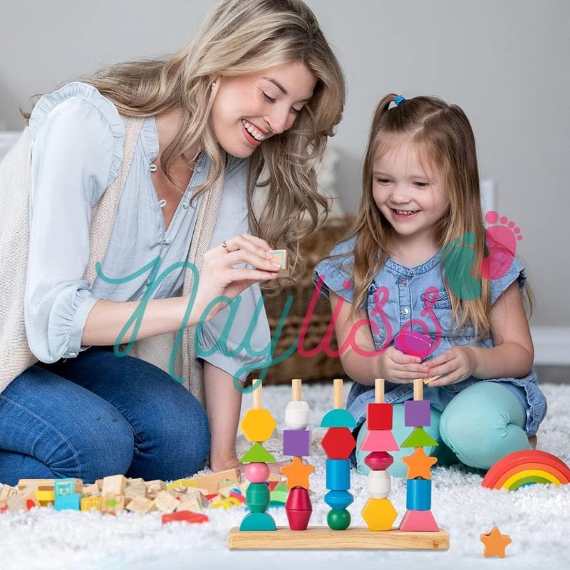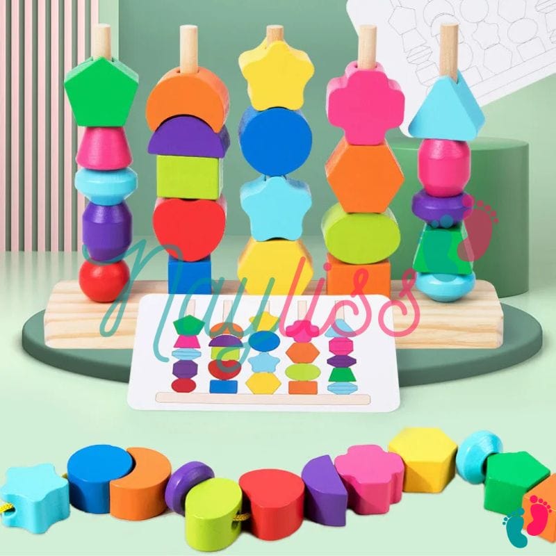 Perles en bois à empiler et à enfiler Montessori - KIDS STADY