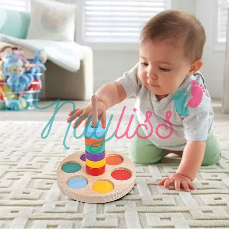 Il doit associer les blocs aux couleurs correspondantes aux bon disque, il apprendra tout en jouant, ce qui renforce sa mémoire et sa compréhension et le tri des couleurs.