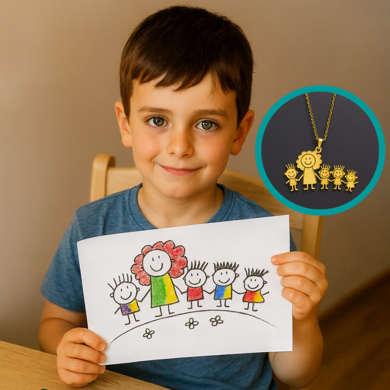 Transformez le dessin de votre enfant en un bijou élégant et intemporel que vous porterez chaque jour avec fierté.