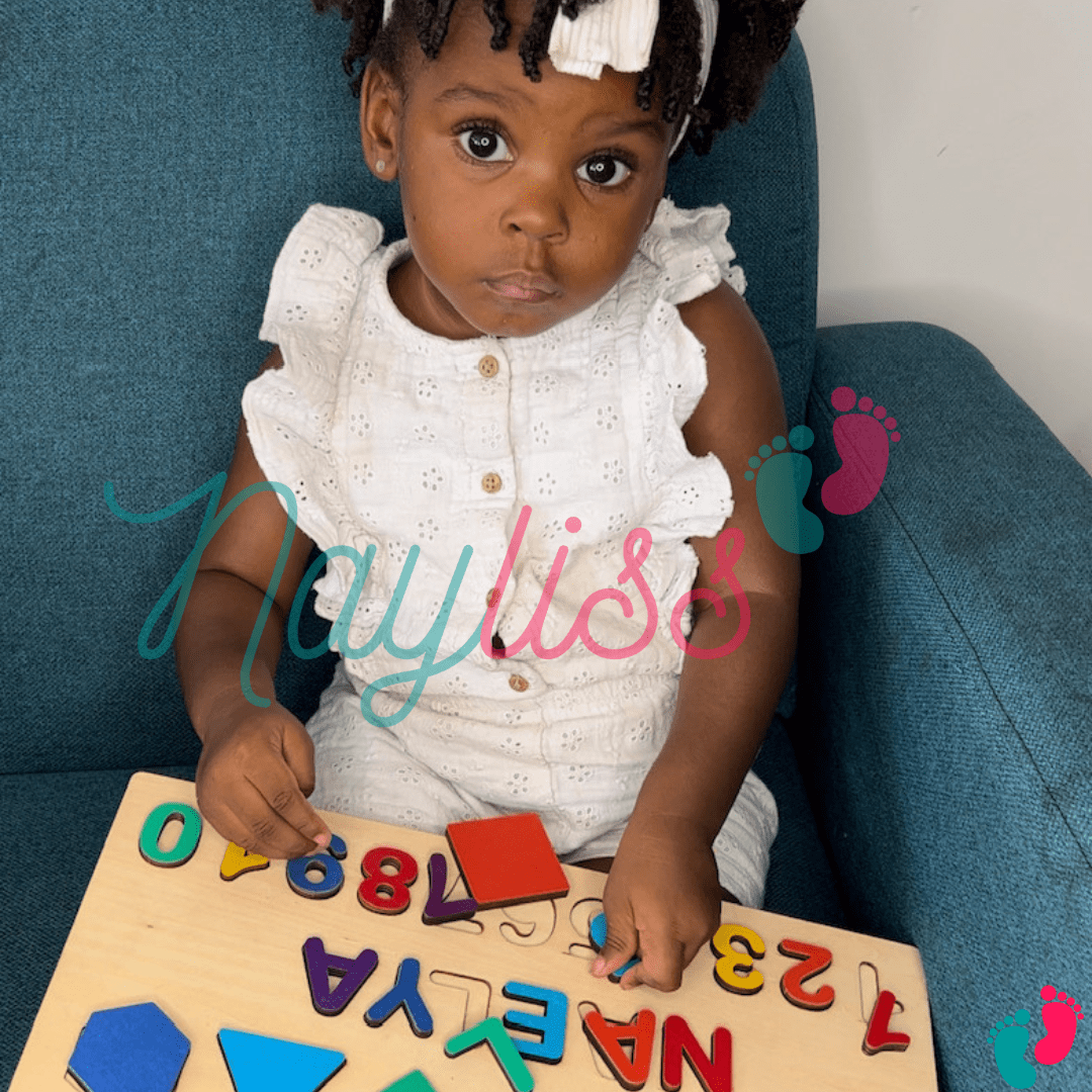 Avec notre puzzle enfant, il apprend les lettres de son prénom.Il commence à apprendre les couleurs et les formes.